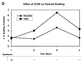 (Figure 1C), although the trend was clearly towards a divergence. A comparison of the number of budding hydranths, however, showed a statistically significant difference between treatments on days 2-4