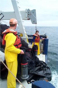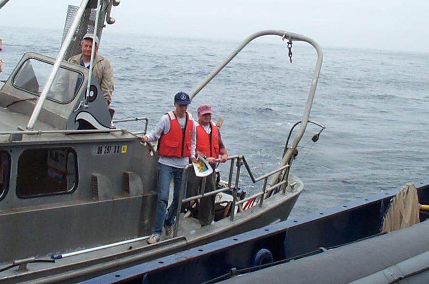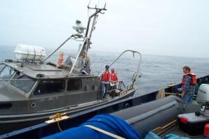 Sometimes there were interesting diversions from CTD'ing and MOCNESS'ing. Like the time the mail arrived. The delivery came by way of the RV Sacajawea,/I>, Oregon State's smallest research vessel, used for daytrips off of Newport, OR.