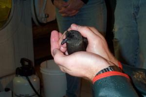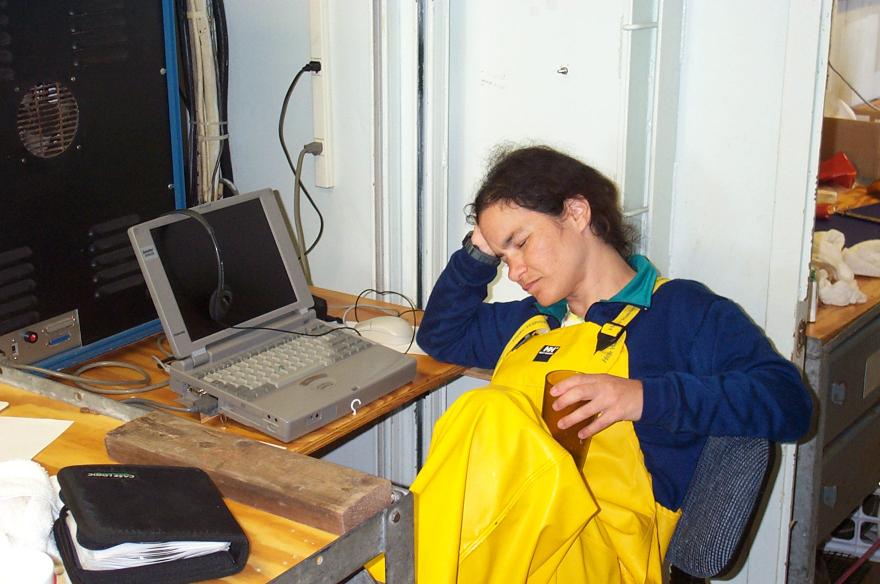 Sometimes the plankton watches were long and busy. After retrieving a MOCNESS, there might be up to an hour of work to rinse the nets, pickle and preview screen the sample contents, and reset the net for the next cast. Since some of the stations were only about an hour apart during the process studies portion of the cruise, there was barely time to finish one station before arriving at the next. Fortunately, we rarely MOCNESS'd two consecutive stations. Sometimes there was time between stations for other activities, like...