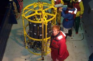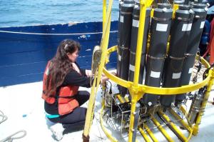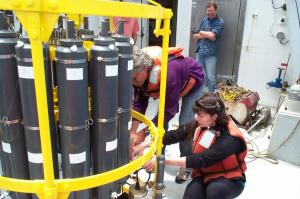 Once we even got the bird and mammal observers (Cyndy and Dave) to draw water from the rosette bottles and...