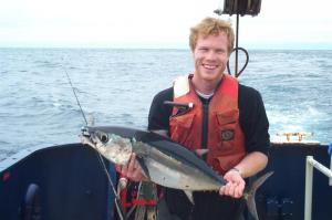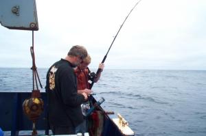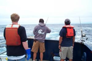 When we got far offshore into warm water, the crew and some of the scientists wetted their lines seeking the tuna.