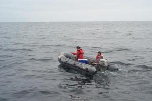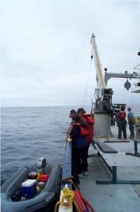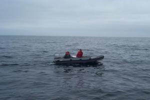 A couple of times they saw fronts with aggregations of birds, and we would stop the ship, deploy an inflatable, and Shad and David would go off for a closer view.