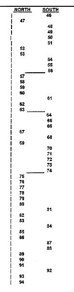 Figure 10. Summary of directions (north or south) of flow anomalies indicated by OSCURS model generated surface drift trajectories started at Station P for winter months December-February. The year indicates the starting year (December). From Ingraham (pers. comm., Alaska Fisheries Science Center, Seattle, WA).